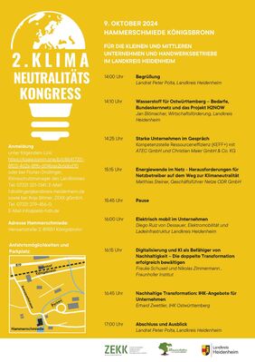 Der Landkreis Heidenheim und das Zentrum für nachhaltige Energieversorgung, Klimaschutz und Klimafolgenanpassung gGmbH laden am 9. Oktober 2024 herzlich zum 2.Klimaneutralitätskongress in der Hammerschmiede in Königsbronn ein.
