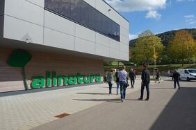 Bereits während der Betriebsbesichtigung bei der allnatura Vertriebs GmbH & Co. KG wurde deutlich, wie Holz attraktiv und wirtschaftlich lohnend im gewerblichen und öffentlichen Bauen eingesetzt werden kann. Im Anschluss berichtete Matthias Schlosser, Geschäftsführer und Vertriebsleiter der Schlosser Holzbau GmbH aus Jagstzell im Detail über das herausfordernde Bauprojekt des ganz in Holz konstruierten allnatura-Gebäudes. „Wir verarbeiten heute schon den Rohstoff von morgen“. Dieser Nachhaltigkeitsgedanke werde durch den Einsatz von recyclingfähigem Baumaterial und der unkomplizierten Demontierbarkeit der Bauelemente schon bei der Errichtung umgesetzt. Zudem sei das Firmengebäude zu 58 Prozent Energie-autark und damit „ein richtiges Kraftwerk“.