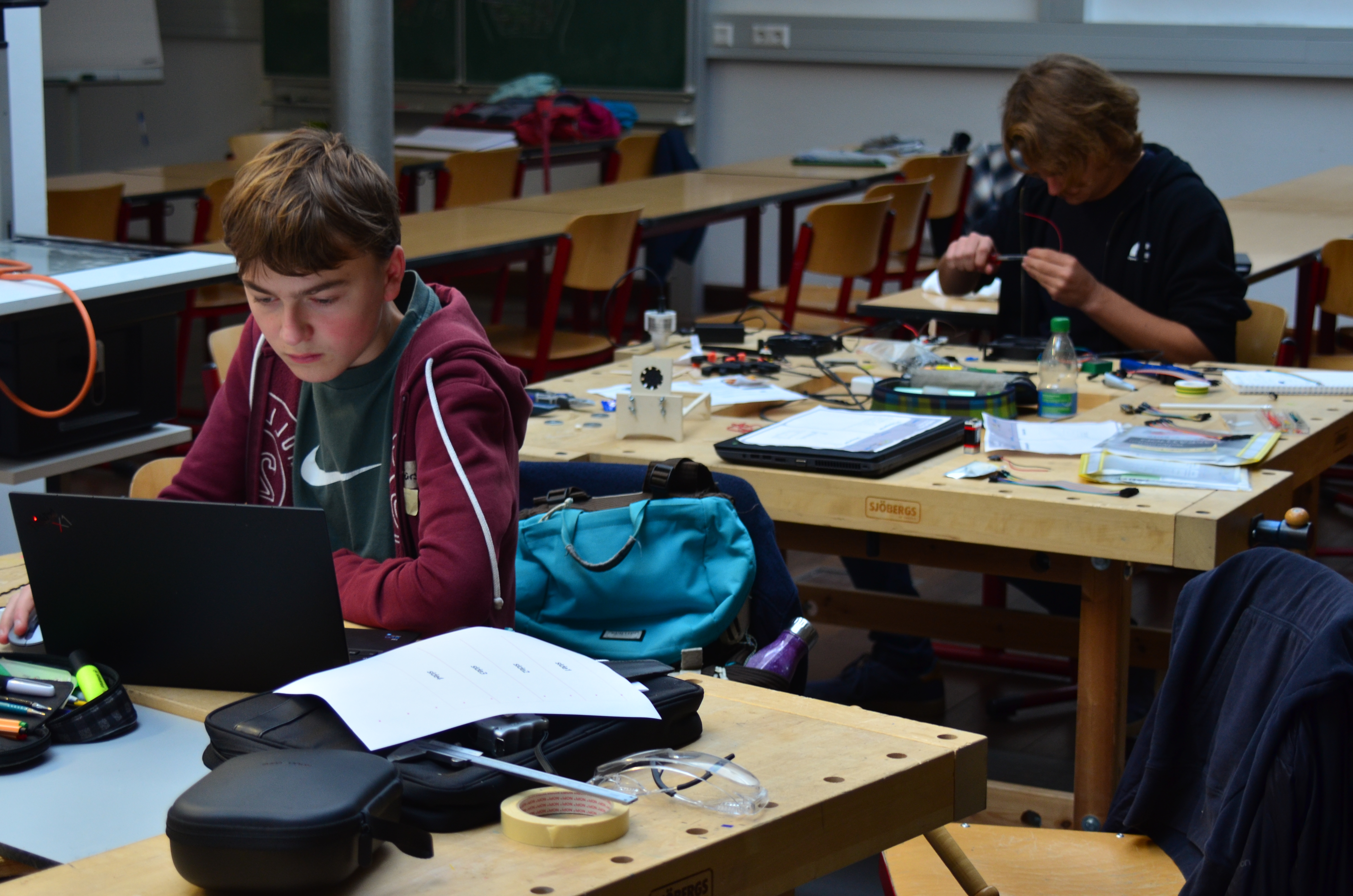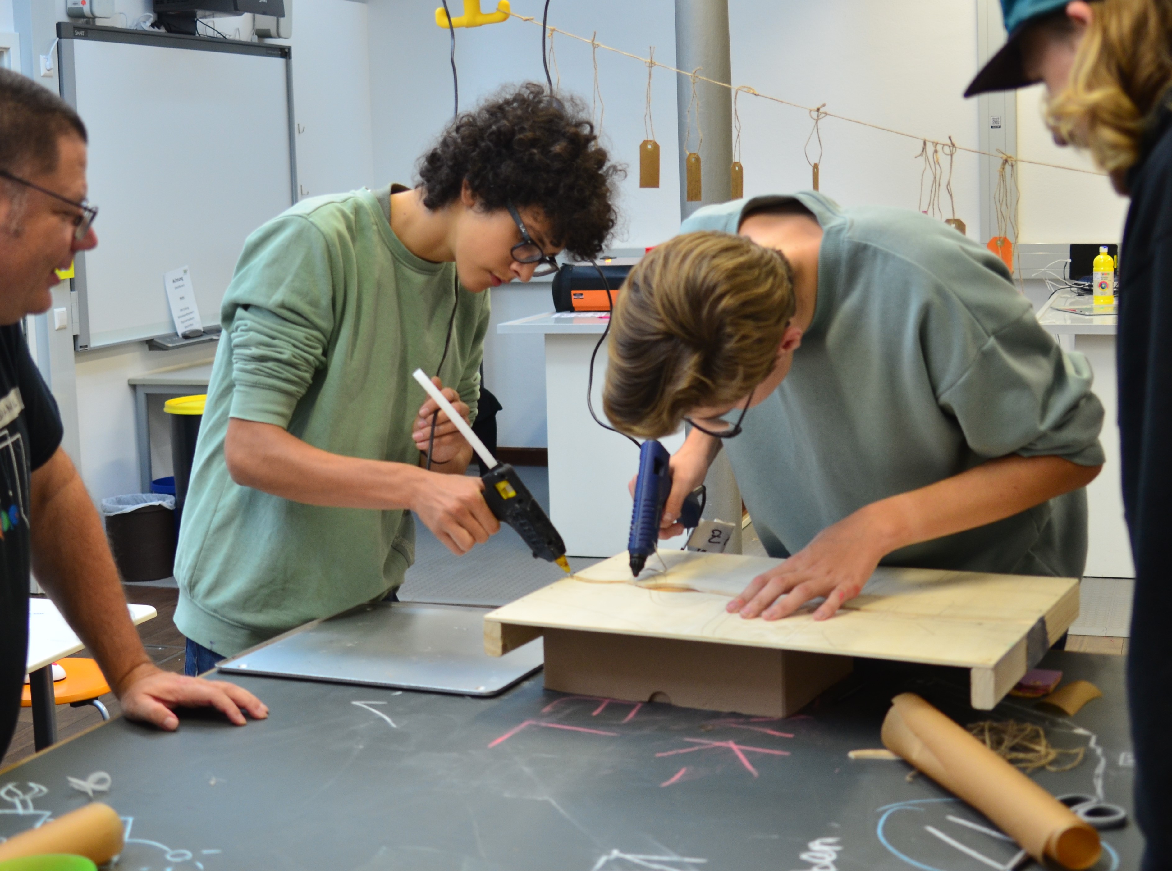 Bild: Jugendliche beim Makeathon Ostwürttemberg 2023 bei der Arbeit an ihren Werken.