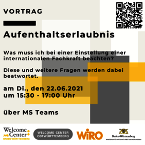 Region Ostwürttemberg. Der erste Vortrag behandelt das Thema Aufenthaltserlaubnis. Die Teilnahme ist kostenfrei und richtet sich an kleine und mittlere...